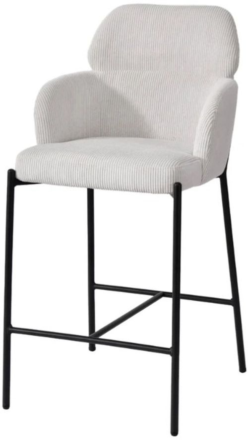 A modern counter-height silhouette wrapped in soft corduroy-style fabric with gently rounded edges and slender metal legs for a balanced industrial look.Read More