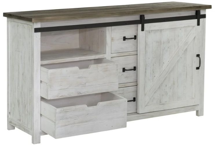 This item embodies natural rustic charm. This collection features an antique white finish, farmhouse gliding doors and lots of room for storage!Read More