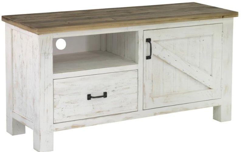 This item embodies natural rustic charm. This collection features an antique white finish, farmhouse gliding doors and lots of room for storage!Read More