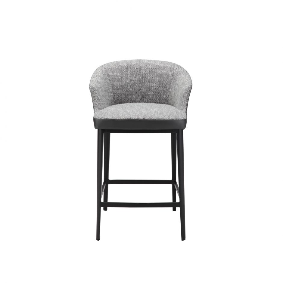 The Beckett counter stool features a curved, inviting silhouette with tapering steel legs. A pleasant contrast, the exterior of the chair is wrapped in sleek easy-clean-vegan leather, while the seat is soft fabric upholstery.Read More