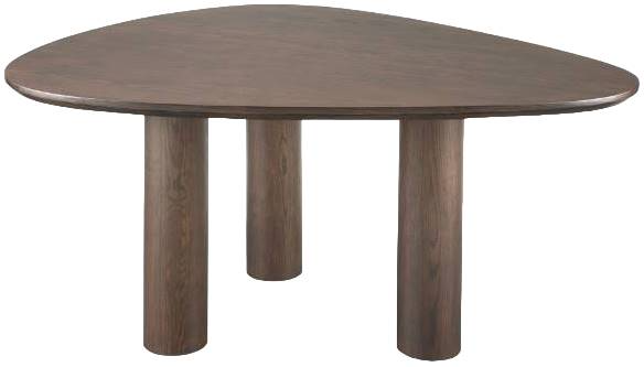 The Finley dining table's rounded triangle tabletop accommodates six people. Its clean lines and simple profile add a touch of sophistication as the three-column base complements the rounded triangle top. Finished in a natural ash wood veneer, the table offers both visual appeal and a tactile, timeless experience.Read More