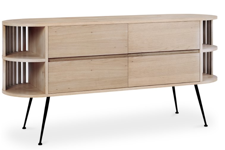Constructed from solid oak, the Henrich sideboard features two barn-style doors that provide easy access to two adjustable interior shelves, while the white oil finish creates an elegant and understated look. Metal legs complete the Mid-Century Modern look.Read More