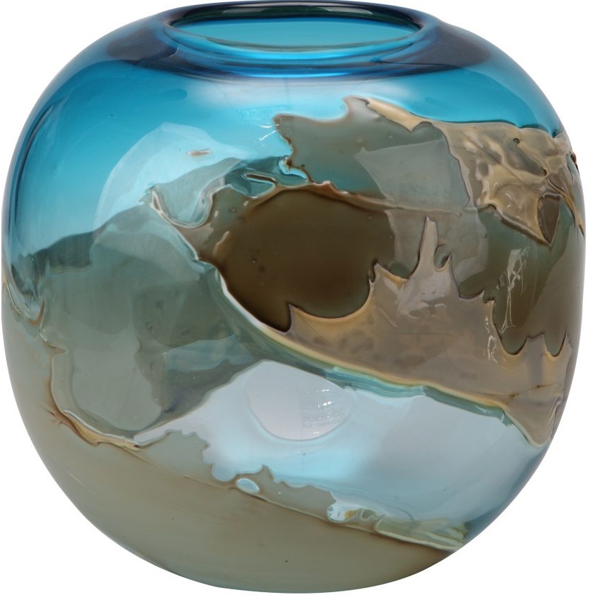 Mimicking the intricacy and power of an ocean wave, the Mystic Blue vase's whimsical design is achieved through a glass blowing technique. A large globe allows you to fit short stem flowers and foliage into the vase, while natural hues of blue and brown add to your colour palate.Read More