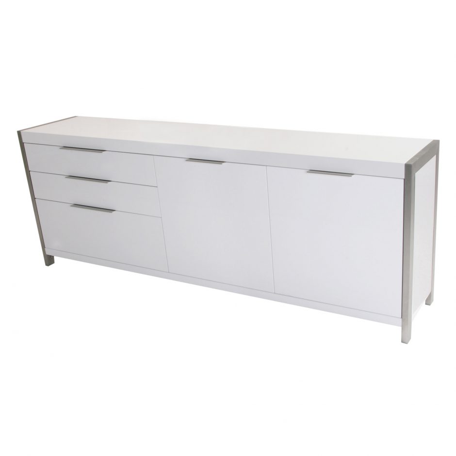 At Moe’s, we firmly believe that the home provides an environment of comfort and positivity. This belief is exemplified in the detail and care we give to our products. We strive to keep our stores warm and inviting; welcoming customers to come and nourish their desire for home décor. Sophisticated sideboard in matt white with brushed stainless steel base.