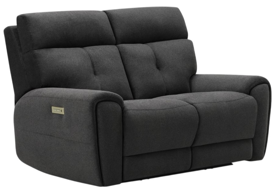 Power recline, power headrests and power lumbar with a button switch featuring integrated USB charging, and LED backlighting, finished in an attractive brushed metal